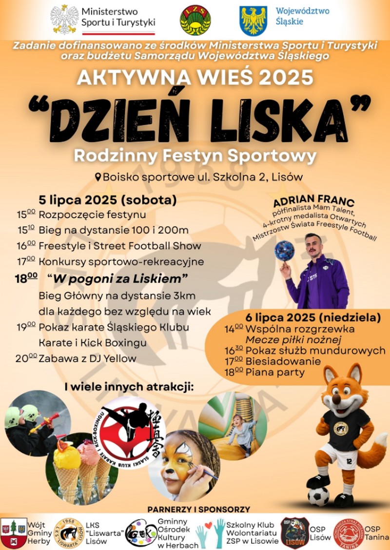Rodzinny Festyn Sportowy Aktywna Wieś - Dzień Liska, 05-06.07.2025 r. Lisów